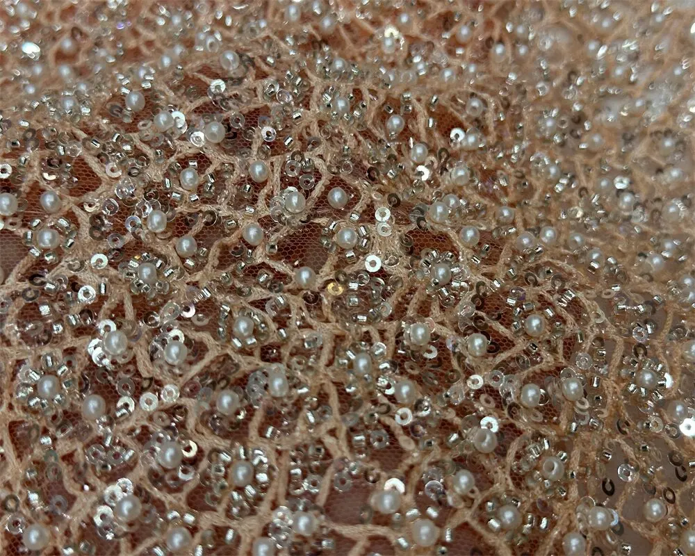 This lace is seriously amazing! The gold color is so rich and luxe, and the beading is crazy heavy, which makes it feel super high-end. Perfect for a dress that’ll turn heads at any party. The sequins give it a gorgeous sparkle. Love it!