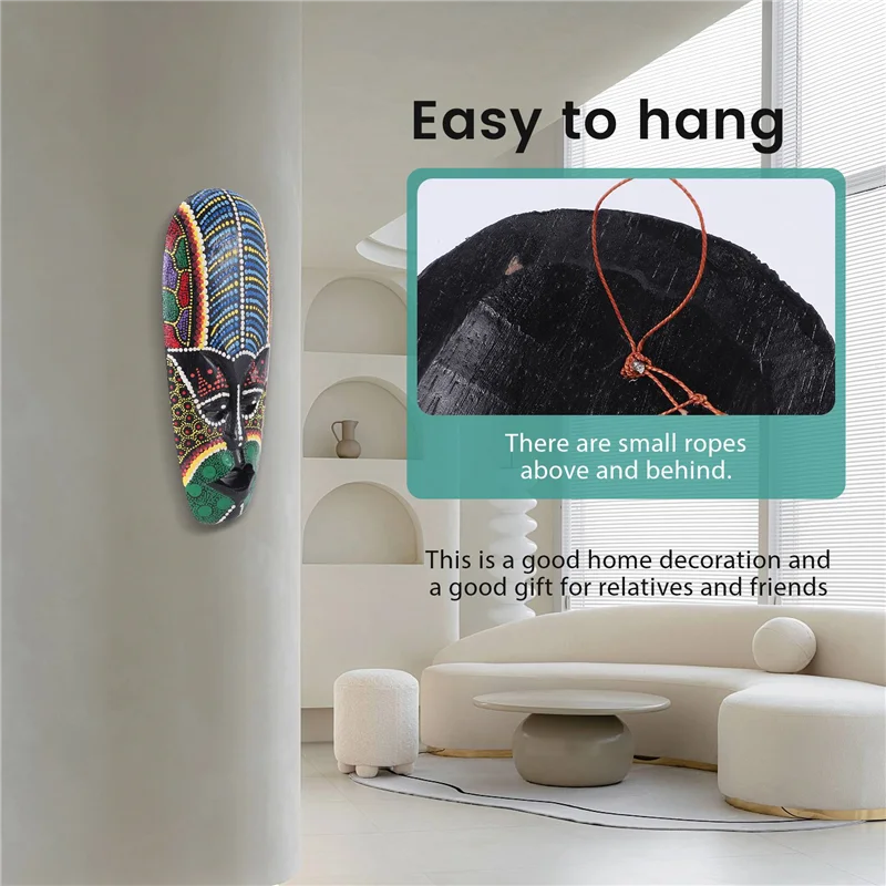 4. Multifunctional home decoration wall hanging: very suitable for decoration or African cultural decoration. The wooden material is light, easy to install and place, suitable for bar and home wall decoration.