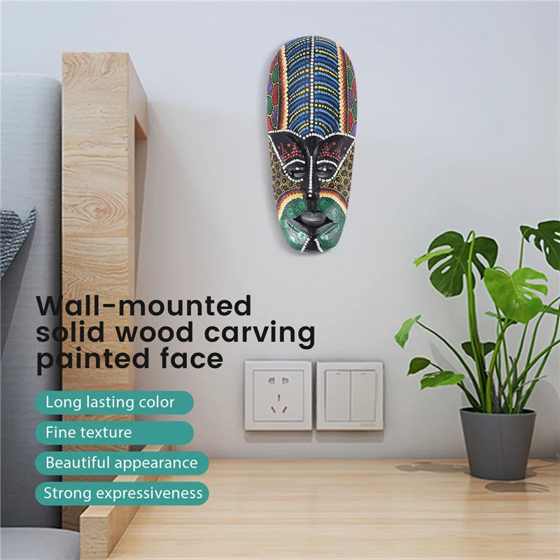 2. Thai solid wood carvings are inspired by African totems, with rich colors, exaggerated, rough and simple shapes. Wall-mounted small hand-painted decorative wooden mask. Thai artists use lightweight and environmentally friendly wood to make handmade.