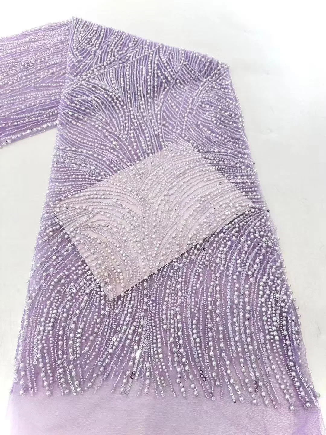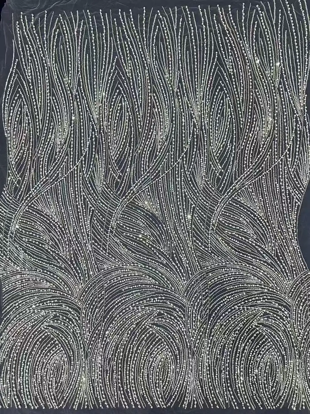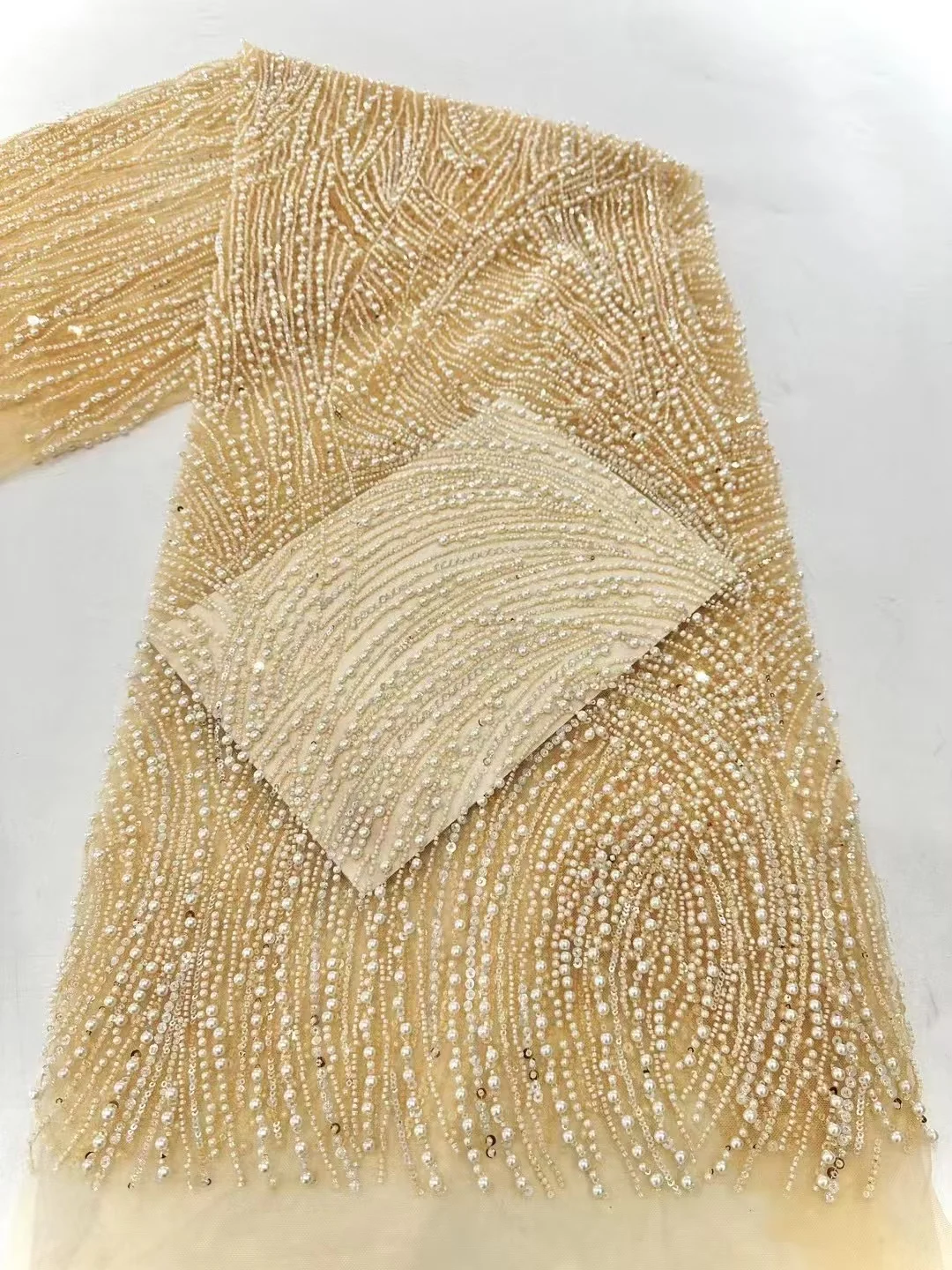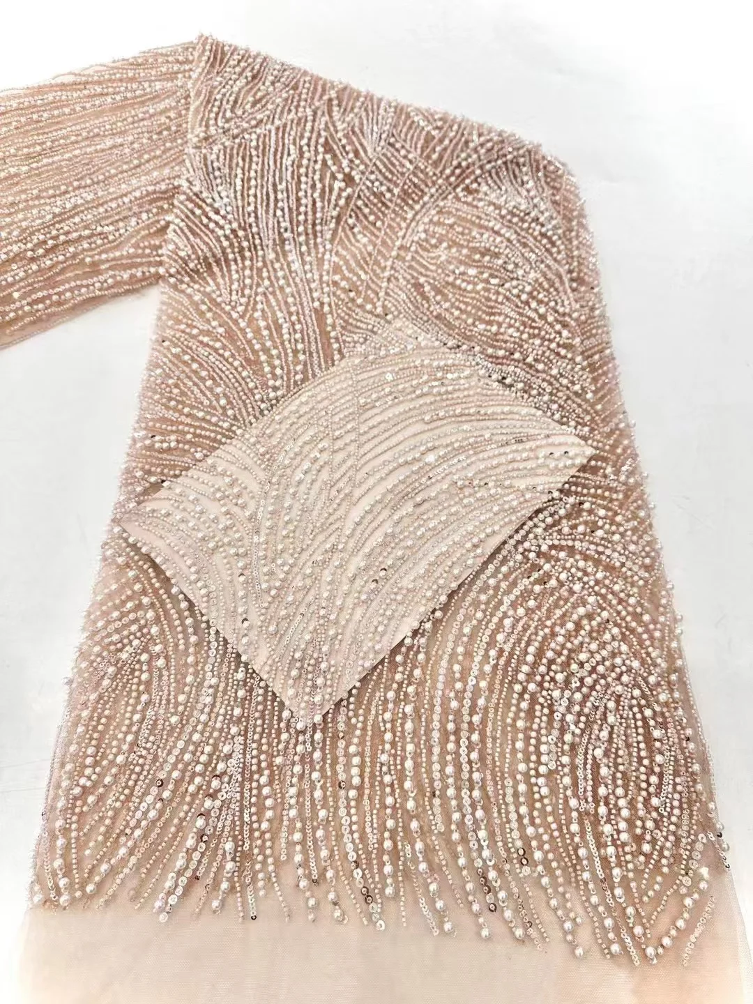 This lace is seriously amazing! The 3D flowers are so pretty and the beading is intricate. It feels really luxe, perfect for a special occasion.