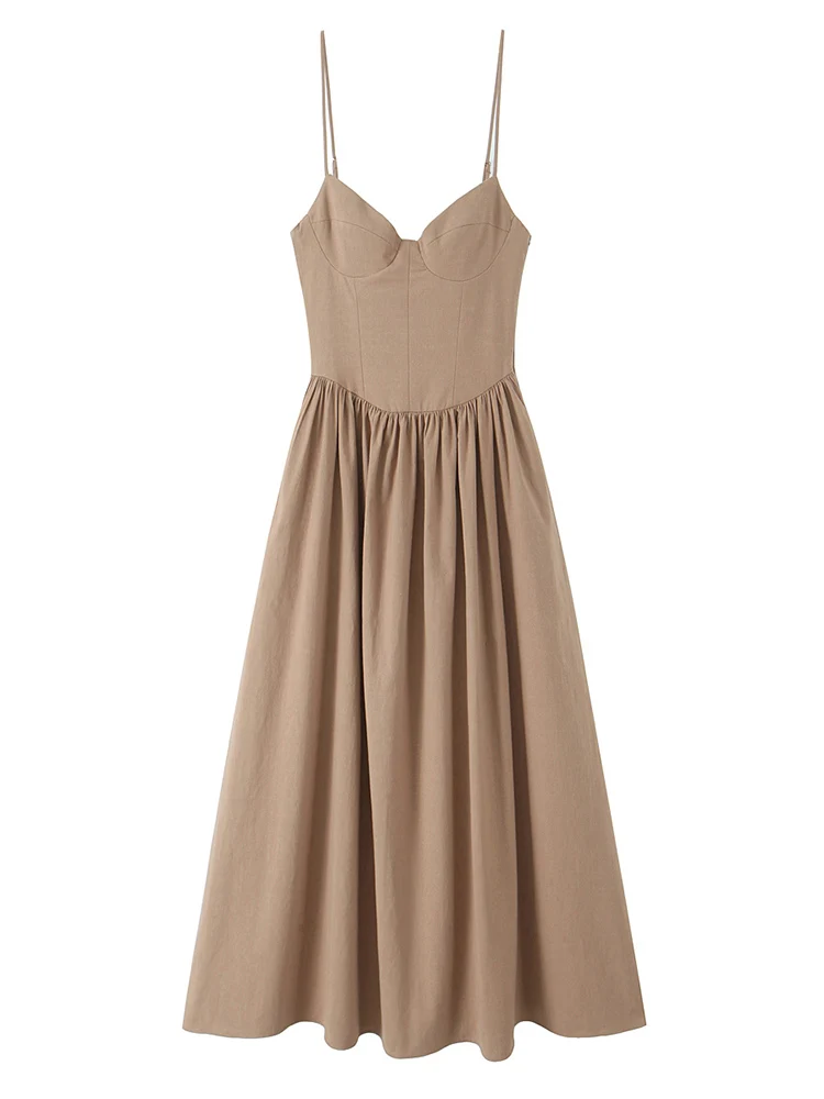 The KUCLUT brown pleated midi dress offers vintage charm with modern chic. Its backless design and thin straps add a touch of allure, while the A-line silhouette flatters every figure. The soft, flowing fabric ensures comfortable all-day wear, making it perfect for any occasion