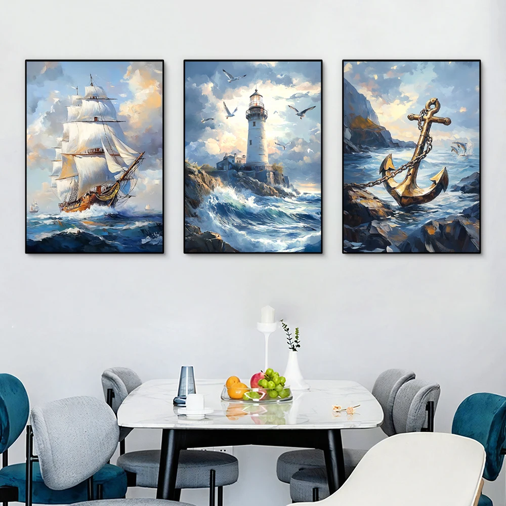 Bring the tranquil beauty of the ocean into your home with this stunning landscape sailboat canvas print. Its vibrant sky-blue hues and calming wave imagery create a serene atmosphere, instantly enhancing any living space